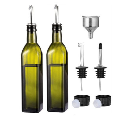 Γυάλινο σκούρο πράσινο μπουκάλι μαγειρικού ελαίου με ατσάλινη φούσκα 500ml 2pcs